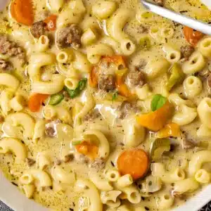 This soup is comforting in the best way. It has the savory flavor of a cheeseburger, the creamy texture of a macaroni dish, and the ease of a one-pot meal. Every spoonful is rich, cheesy, and hearty without being complicated or fussy.