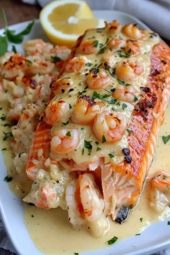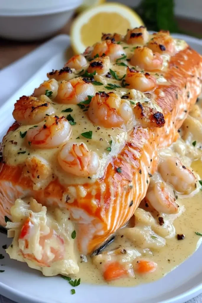Easy Crab and Shrimp Stuffed Salmon Dinner is proof that a show stopping seafood meal does not need to be complicated. With simple ingredients, straightforward steps, and rich, satisfying flavors, this recipe delivers every time.