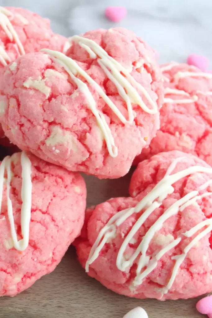 Easy Valentine Strawberry Cookies Everyone Loves are soft, cake-like cookies made with strawberry cake mix for a pretty pink color and sweet strawberry flavor. These festive cookies come together quickly with just a few ingredients, making them perfect for Valentine’s Day, parties, bake sales, or a fun anytime treat.