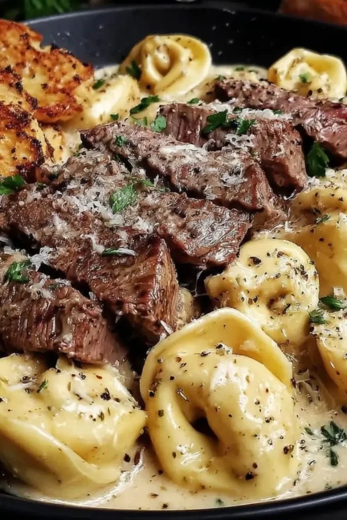 Why You’ll Love This Hearty Steak and Tortellini with Garlic Sauce