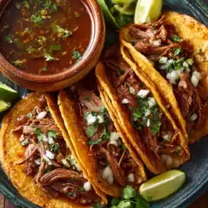 Ladle some of the hot consommé into small bowls for dipping. Garnish tacos with chopped onions and cilantro if you like. Serve immediately while the tacos are crisp and the cheese is melted. The combination of crispy outside, tender beef, and the flavorful broth makes each bite memorable.