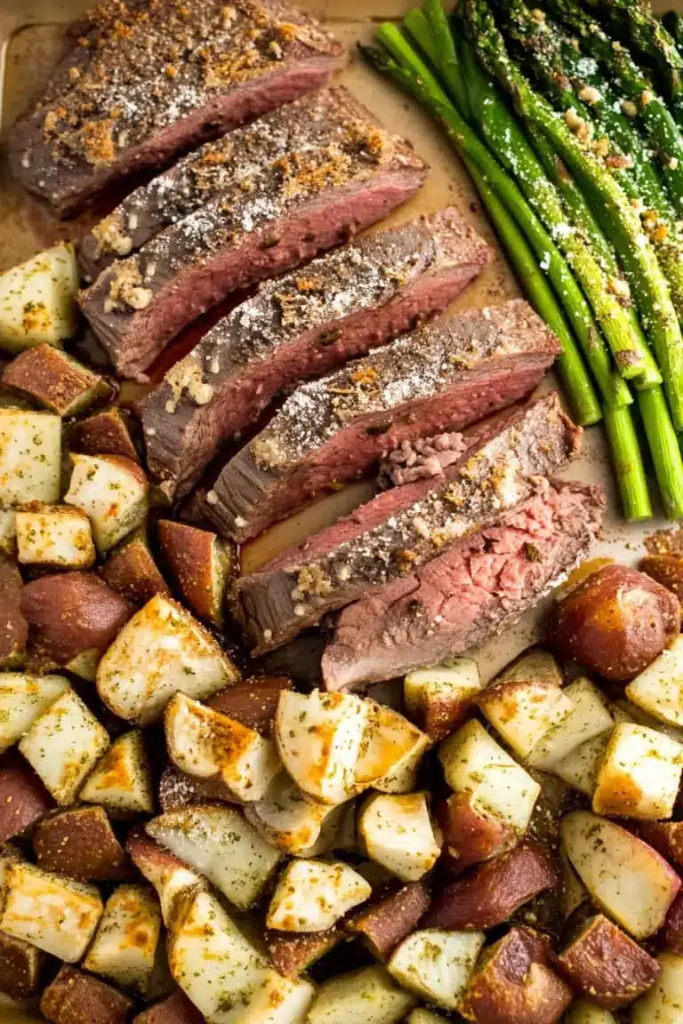 A Parmesan Crusted Steak with Potatoes and Veggies is a flavor-packed, family-friendly dinner that delivers a complete meal with minimal effort, making it perfect for busy weeknights or relaxed weekends. This recipe highlights tender steak topped with a savory Parmesan crust, paired with crispy potatoes and vibrant vegetables, all roasted together on a single sheet pan for easy cleanup. It is hearty, satisfying, and an excellent way to turn simple ingredients into a comforting homemade dinner.