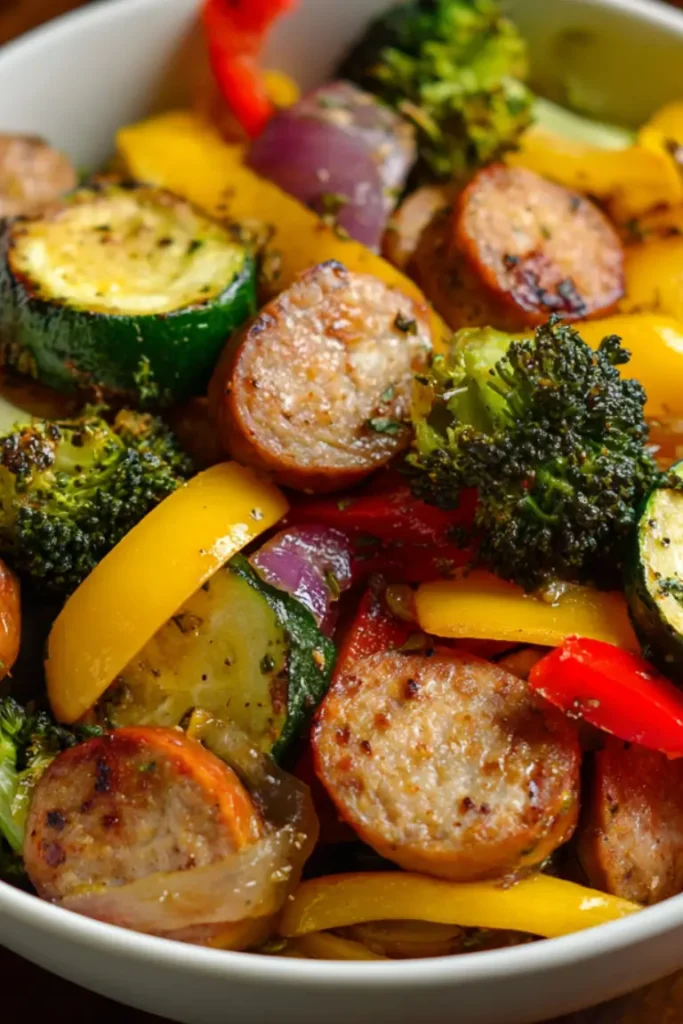 Cut all ingredients evenly so they cook at the same rate. Use a large skillet to avoid overcrowding, which helps the vegetables sauté instead of steam. Brown the sausage first to build flavor in the pan before adding vegetables. Taste and adjust seasoning at the end, especially if your sausage is already salty. For extra caramelization, let the vegetables sit undisturbed for a minute or two before stirring.