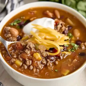 If you’re craving a cozy, flavorful meal that comes together fast, this easy taco soup is the perfect weeknight comfort food. Packed with seasoned ground beef, beans, corn, tomatoes, and warm spices, it delivers all the familiar flavors of taco night in a hearty, satisfying bowl. This one-pot recipe is simple, affordable, and incredibly flexible, making it ideal for busy families or anyone who loves a comforting, home-cooked meal without fuss.